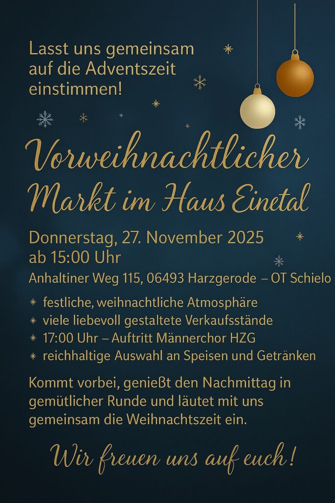 | 27.11.2025 | Weihnachtsmarkt ab 15 Uhr – öffentliche Veranstaltung |